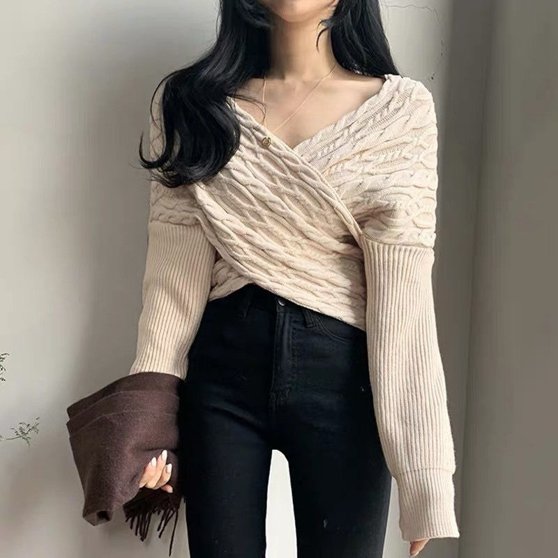 韓國🇰🇷NEW 麻花交叉毛衣 ————✨顏色:杏/紅/黑 ✨材質:針織 尺寸胸50 長62 (F)S-L可穿