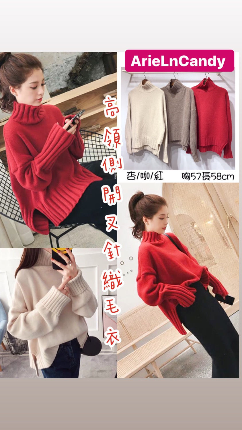 高領側開叉針織毛衣 手袖下擺設計很加分✔️💕